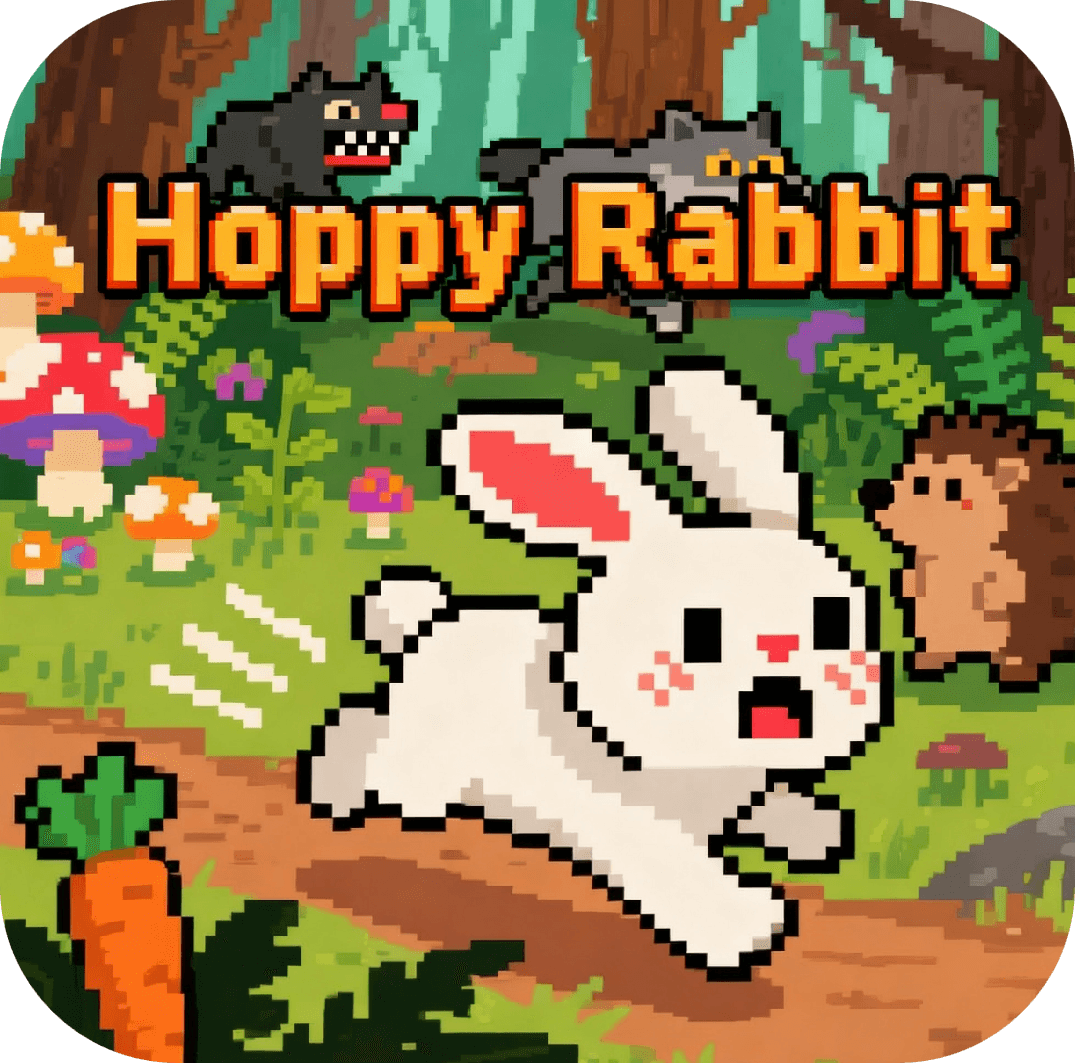 Pixel-style Hoppy Rabbit is on the run! Jump over spiky hedgehogs, outrun hungry wolves, and collect as many carrots as you can—non-stop forest fun! Level up to unlock faster speeds and trickier obstacles—can you beat your high score?